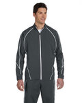 • Single-needle hemmed bottom; "R" Russell on left sleeve end